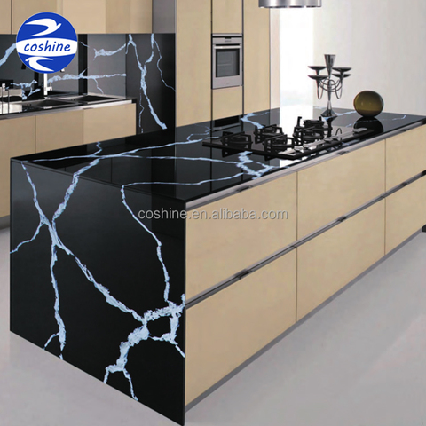 새로운 모델 화이트 뿌리 최대 크기 인공 calacatta 블랙 석영 석판